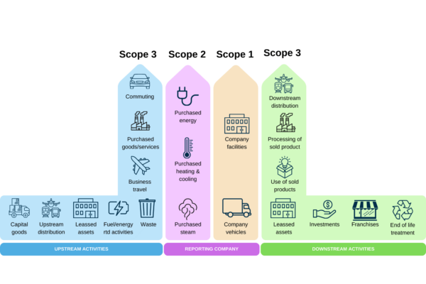 - Scope 3: As the largest and most comprehensive section, Scope 3 covers all the indirect emissions of the value chain, both upstream and downstream, that are not already covered in Scope 2. This includes emissions from sources outside your company’s control, including emissions from suppliers, product usage by customers, and more. For a full list of what’s included, refer to the Corporate Value Chain Accounting Standard (Scope 3) document.